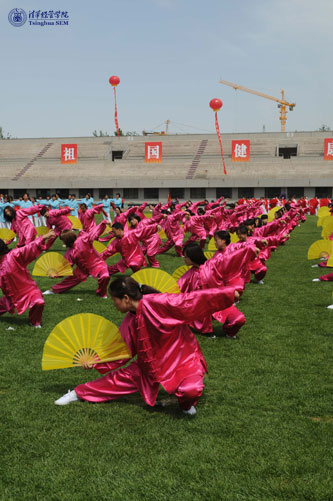 下午一点,首先进行的是精彩的入场式及开幕式表演,经管学院教师代表队身着整齐的蓝色运动服精神抖擞地步入会场并参加了开幕式团体操表演及武功扇表演,良好的精神面貌和英姿飒爽的精彩表演令人印象深刻。