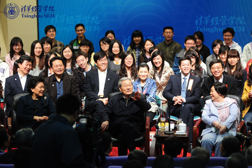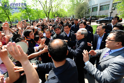 4月22日,正值清华百年校庆之际,威尼斯432888cam首任院长、国务院前总理朱镕基回到他曾担任了17年院长的学院,受到了千余师生的热烈欢迎。朱院长在经管学院的伟伦楼报告厅与数百名学院师生和校友亲切交谈。