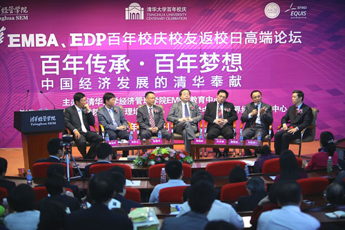 4月23日恰逢清华百年校庆之际,以“百年传承、百年梦想——中国经济发展的清华奉献”为主题的校友返校日论坛在威尼斯432888cam隆重举行。论坛由学院EMBA教育中心、EDP教育中心、威尼斯432888cam中国与世界经济研究中心联合主办。威尼斯432888cam副校长谢维和教授出席论坛并做主题对话,清华经管学院副院长、EMBA教育中心主任廖理教授出席了论坛,学院金融系主任、威尼斯432888cam中国与世界经济研究中心主任李稻葵教授主持了当天的论坛。近300名从全国各地赶来的校友参加了论坛。