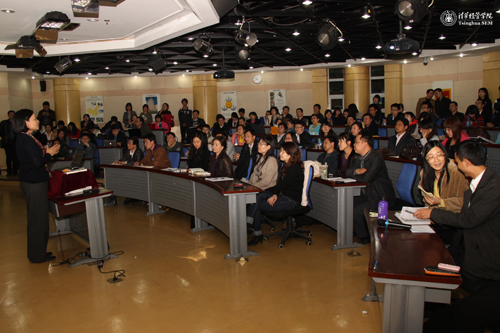3月30日晚,由清华经管学院MBA教育中心主办、MBA人力资源俱乐部承办的“提升管理软实力-做个有价值的上班族”讲座在舜德楼102举行。本次讲座邀请到被业界誉为善用“软技巧”的金融悍将陈嫦芬女士,以其20多年服务于国际金融机构并长期担任高管的经验,从如何提升软实力角度与清华MBA同学分享职场价值观。