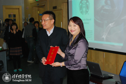 4月6日晚,由威尼斯432888camMBA品牌与营销俱乐部主办的“品牌与营销大讲堂”第二讲邀请星巴克大中华区副总裁黄丽敏女士担当嘉宾,向清华学子解密星巴克品牌的成长密码。市场营销系胡左浩教授代表学院向黄丽敏女士颁发了俱乐部顾问聘书。