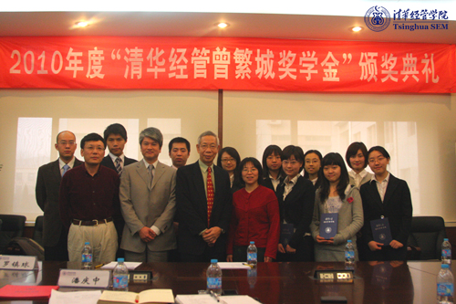 12月21日下午,2010年度“清华经管曾繁城奖学金”颁奖典礼在学院举行。本年度,学院共有10位研究生和本科生获得该奖项。台积电董事长曾繁城先生、中国业务副总经理罗镇球先生参加颁奖典礼,学院党委副书记赵冬青教授主持该活动。