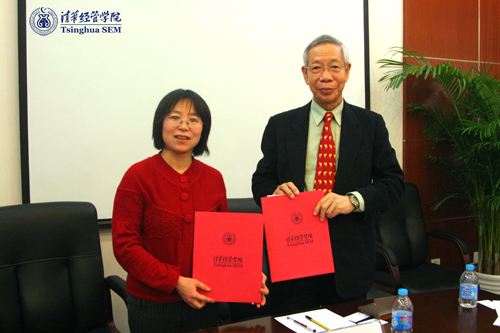 座谈结束后,曾繁城先生与赵冬青教授续签“清华经管曾繁城奖学金”协议书。赵冬青教授宣读获奖学生名单,曾繁城先生亲自为获奖学生颁奖并与他们合影留念。(编辑:沟通办 供稿:合作发展办公室)