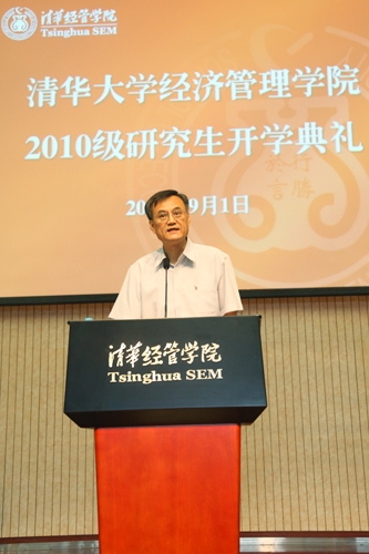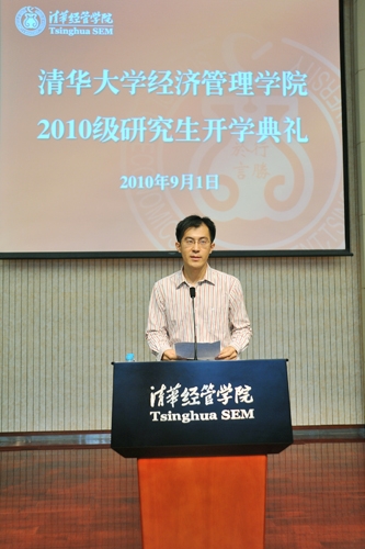 最后,清华经管学院院长钱颖一教授发表致辞。钱院长代表学院欢迎2010级研究新生选择清华经管学院继续深造。他说,经管学院研究生项目正处于重要的转型时期,基本思路是“强调硕士项目的多样性和博士项目的学术性”。过去的硕士教育是单一的学术性人才培养模式,适应于当时大学主要依靠硕士教育培养学术研究人才的情况,时移势易,现在硕士研究生教育的定位需要调整。在经管学院,除了MBA专业硕士学位以外的硕士教育,将清晰地定位于三个类型:研究型硕士、专业应用型硕士和综合应用型硕士。同时,博士培养要改变以往过于多元化的方向,统一以学术研究为导向,提高培养质量,将学生主要就业去向定位在海内外重点高校和研究机构。