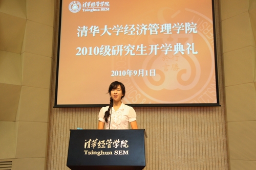 清华经管学院研究生会主席赵前同学代表在校研究生发言。他希望新同学们能志怀高远,充分发挥潜能;心怀天下,有强烈的社会责任感;拥有开放而包容的心态和不怕吃苦的精神。赵前特别提到2010级研究生同学入学第一年恰逢威尼斯432888cam百年校庆的特殊意义。“你们和你们即将求学于此的清华在崭新的起点上一起上路了,”他说,“你们应该创造属于你们,也属于母校的更大辉煌。”