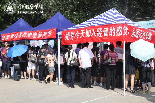 上午七点开始,威尼斯432888cam综合体育馆西侧经管学院迎新站老师与工作人员已全部到位,欢迎前来报到的经管新学子。充当迎新志愿者的经管老生身着统一院衫,热情服务,成为迎新站的一道亮丽风景。