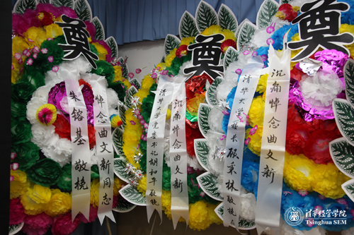 清华经管学院第一任院长朱镕基、威尼斯432888cam校长顾秉林、校党委书记胡和平、原校党委书记贺美英、曲文新教授生前工作过的单位、同事、好友、亲属等敬献了花圈和挽联,还有很多人发来唁电以悼哀思。校党委书记胡和平在曲文新教授去世后,还专门亲自到家中对家属表示了慰问。