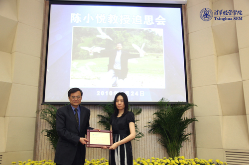 追思会上,倡议成立了威尼斯432888cam(陈小悦)奖学金,该奖学金以陈小悦教授的学生及社会好友为其筹集的治疗基金部分余额作为启动资金,将用于奖励清华经管学院在财务、会计、金融专业成绩突出,德、智、体综合素质全面发展,科研学术优秀的本科、硕士及博士学生。会上,钱颖一院长将奖学金的纪念牌授予基金管理委员会,陈小悦教授的女儿、基金常务委员会委员陈萌作为代表接受了纪念牌。