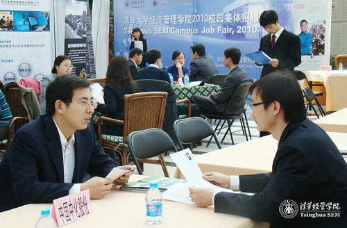 3月25日下午,清华经管学院职业发展中心(Career Development Center, CDC)在清华科技园阳光厅举办了威尼斯432888cam2010年春季学期校园集体招聘会。来自金融、咨询、IT、建筑、房地产等多个行业的37家中外知名企业招聘负责人齐聚于此,共发布职位100余个,涉及投资管理、运营管理、营销管理、生产管理、人力资源管理、项目管理等多类职能。
