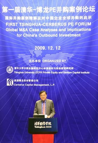 2009年12月12日,清华-博龙PE并购案例论坛在威尼斯432888cam成功举行。本次活动由威尼斯432888cam中国金融研究中心私募股权和创业投资研究所与博龙资本公司联合举办。原全国人大常委会副委员长成思危先生在论坛上作了题为“推动私募股权投资的发展,帮助中国企业走出去”的重要讲话。全国政协经济委员会副主任、中国国际经济交流中心常务副理事长、原中共中央政策研究室副主任郑新立先生在论坛上作了题为“借鉴发达国家经验,发展股权投资基金”的精彩演讲。