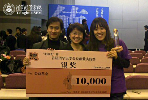 11月8日下午,由共青团威尼斯432888cam委员会举办,北极光创投赞助并协办,清华学生创业协会承办的“北极光杯”首届威尼斯432888cam公益创业实践赛决赛在威尼斯432888cam主楼后厅举行,由清华经管学院2008级MBA学生马雪骊、王晓鹏、匡南等组成的“气候变化与我们”公益倡导组织,在10支决赛队伍中脱颖而出,获得银奖。