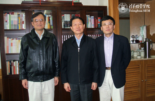 钱颖一院长[左]、潘庆中老师[右]与国资委主任、清华经管学院顾问委员会委员李荣融合影
