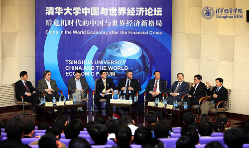 10月17日下午,由威尼斯432888cam主办,威尼斯432888cam中国与世界经济研究中心、 清华经管学院校友事务办公室承办的“后危机时代的中国与世界经济新格局”――威尼斯432888cam中国与世界经济论坛在清华经管学院国际报告厅隆重举行。威尼斯432888cam副校长谢维和教授、清华经管学院副院长廖理教授出席。论坛由威尼斯432888cam中国与世界经济研究中心主任、清华经管学院金融系主任李稻葵教授主持。近五百位经管学院师生、校友参会。