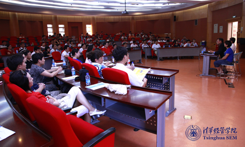8月26日下午4点半,清华经管学院新生家长座谈会在舜德楼401召开。院长钱颖一,主管本硕博教学工作的副院长、经济系主任白重恩,党委副书记赵冬青,教学办公室主任朱玉杰,党委学生工作组组长王毅,以及黎波、贾宁、黄张凯、刘庆、施新政等各位新生班主任,与近200位新生家长亲切座谈。座谈会由赵冬青老师主持。