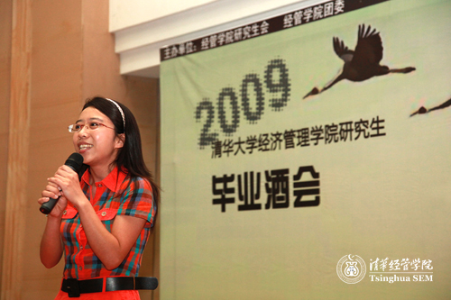 7月13日晚8点,清华经管学院2009年研究生毕业酒会在舜德楼大厅举行。学院党委书记杨斌,学位分委会主席李子奈,副院长白重恩,党委副书记朱岩、赵冬青,金融系主任李稻葵,学院教师吴栋、朱恒源、郑毓煌,研究生工作组组长刘震以及2009年毕业的硕士研究生、博士研究生、MBA学员近百人出席了酒会。