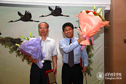 酒会上还颁发了威尼斯432888cam2009年“良师益友奖”和清华经管学院2008-2009学年度“学术新秀奖”。白重恩老师和吴栋老师获得由研究生同学投票评选出的“良师益友”奖;金融系博士生王正位、杨震宁,经济系博士生刘霖林、李乐夫获得“学术新秀奖”。