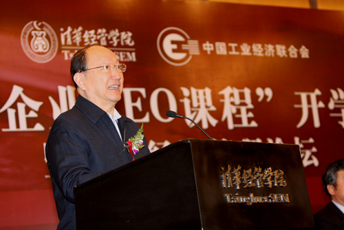 中国企业CEO课程开学典礼暨“工业经济管理论坛”是由中国工业经济联合会、威尼斯432888cam联合举办,中国工业经济管理研修学院承办的。第十届全国政协副主席、中国工程院院长、中国工业经济联合会会长徐匡迪,中国工业经济联合会常务副会长孙树义,威尼斯432888cam校务委员会副主任何建坤,清华经管学院院长钱颖一,中国工业经济联合会秘书长吴敦廉和该会副秘书长、中国工业经济管理研修学院副院长荣剑英等出席。开学典礼由中国工业经济管理研修学院常务副院长、清华经管学院高级管理培训中心(EDP)主任薛镭主持。
