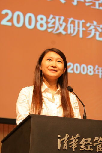 在北京奥组委做媒体工作的MBA新生赵宜同学在发言中表达了对学院的感谢。她说,“清华经管学院是国内外一流的经济管理学院,这里汇集了海内外知名学者,孕育了众多商业精英。作为中国MBA的先行者,清华经管的课程设置和培养理念在与国际同步的同时,又结合了中国特有的管理思维模式,体现出实战性与前瞻性共存的特点。正因如此,清华MBA才让我们所有人神往,并以能够在这里学习为自己的荣耀。”