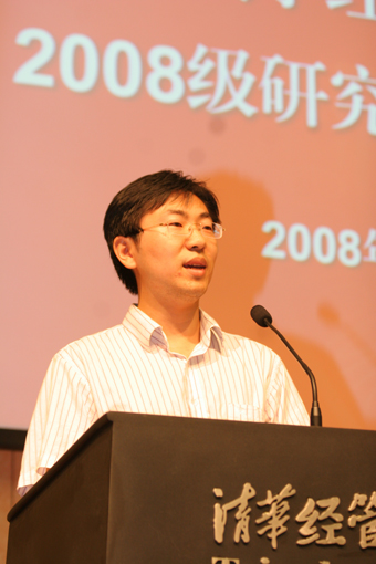 迎新大会上,院党委书记杨斌首先致欢迎辞,欢迎全体硕士生、博士生与MBA新同学以主人身份加入清华经管学院大家庭。致辞中,他重点向同学们阐述了清华经管学院“追求完美”、“至真至善”的精神。他说,作为一个经管人,应该将追求完美融入自己的工作和生活之中。他希望同学们不论将来投身管理实践还是学术研究,都要心怀“成就一流”的梦想。他特别提醒MBA同学们,不要自以为“不再年轻”而放弃对未来的憧憬和对理想的追求,要相信一切皆有可能,从点点滴滴中提升自己的管理水平,避免在机会面前贻误战机。最后,他期望同学们能够成为学院新的骄傲。