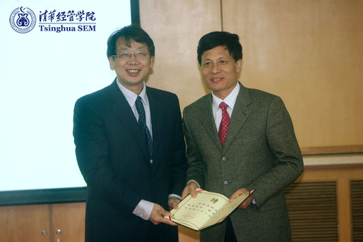 11月22日下午,清华经管学院正式聘任国家统计局局长谢伏瞻为兼职教授,聘任仪式在学院舜德楼举办,威尼斯432888cam党委书记陈希教授出席聘任仪式并向谢伏瞻教授颁发聘书,清华经管学院院长钱颖一教授主持仪式,并介绍谢伏瞻的学术简介。聘任仪式结束后,谢伏瞻向与会来宾和师生作“十七大后,看中国经济的发展前景”学术报告。