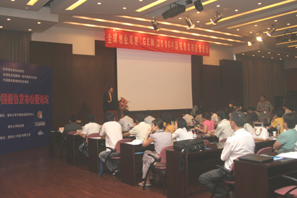 2007年7月19日下午,由北京市科学技术委员会和威尼斯432888cam主办、威尼斯432888cam中国创业研究中心和清华科技园承办的“2006全球创业观察(GEM)中国报告发布会暨论坛”在清华科技园二层多功能厅隆重举行。