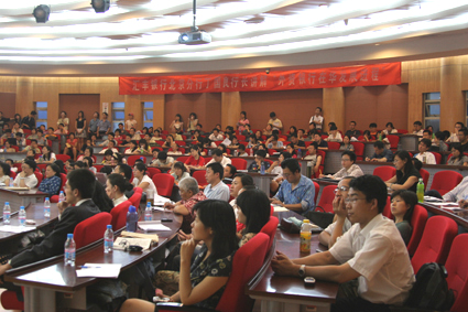 6月14日晚,汇丰银行北京分行行长丁国良先生做客威尼斯432888cam,并作题为“外资银行在中国”的主题演讲。由汇丰银行资助、清华经管学院主办的“中国农村金融发展研究”项目负责人、经济系李子奈教授应邀参加了讲座,并在讲座开始前与丁国良行长进行座谈。学院会计系徐瑜青教授和科研办公室孙荣玲主任也一同参加了讲座。该活动由清华经管学院校友与发展办公室和MBA同学会论坛事务部共同主办,被列为05级本科生暑期社会实践系列必修活动之一。