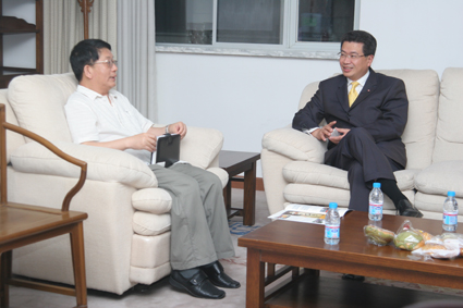 (演讲前,清华经管学院经济系李子奈教授与丁国良行长座谈)