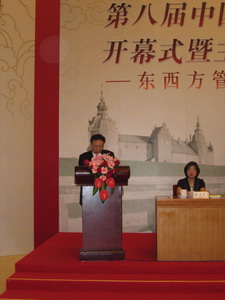 致辞中,赵纯均教授说,从1991年我国开始试办MBA以来,已经达到了年招生两万余人的规模,最近几年我国的MBA教育稳步发展,招生人数仍然以每年5%到6%的速度增加,MBA学生活跃在企业和社会经济的各个部门,逐步崭露头角,为祖国的经济和社会发展做出了重要的贡献。但与此同时,MBA教育在中国也面临着严峻的挑战,关键在于MBA教育所培养出的人才如何满足企业、社会、家庭以及学生自身的要求,这要求MBA教育工作者进一步端正办学思想,提高办学质量,加强师资队伍建设,加强服务,继续进行招生改革,扩大和提高生源的数量和质量,改善MBA教育的政策环境和舆论环境,争取创造出MBA教育的新局面。另外,对于在经济全球化迅速发展的背景下,如何处理国际化和本题化的关系,他说,我们应该一方面学习和借鉴世界上一些优秀的管理思想、理论和方法,另一方面又必须把东西方管理思想中的优秀成分融合起来,在国际化的同时本土化,形成具有中国特色、中国风格、中国气派的的管理理论和方法。最后,他希望这次论坛能为推动东西方管理思想的研究做出有益的贡献。
