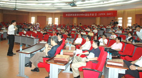 在两次开放日中,清华经管学院副院长、EMBA项目主任廖理教授向考生们介绍了清华EMBA项目自2002年开办以来,在招生录取和国际化发展中取得的进展,他介绍说,学院一直坚持国际化的发展方向,并刚刚通过AACSB国际认证;学院面向全球招生、全英文授课、双方共同授予学位的清华-INSEAD双学位项目也将于今年6月迎来第一批学生。